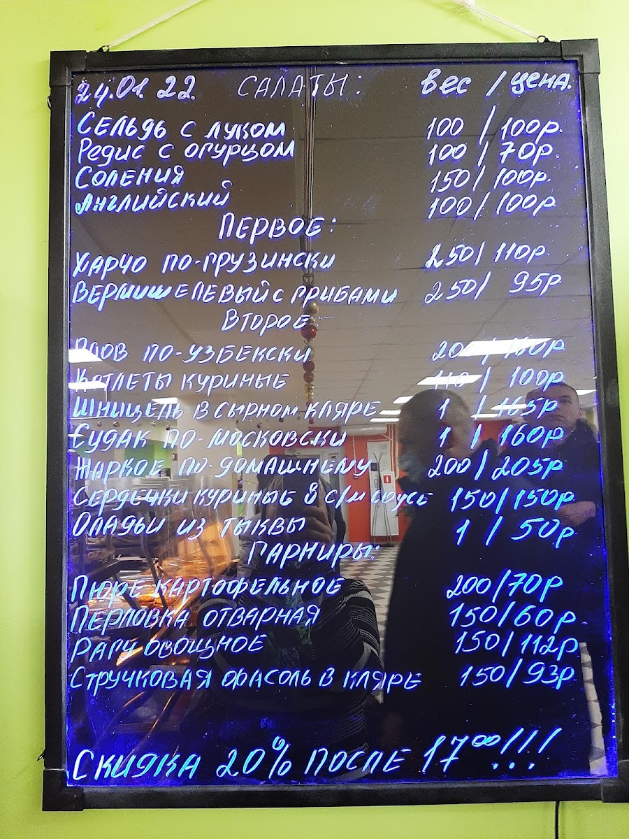 Customer reviews highlight the enticing flavors and generous portions, making it an ideal spot for a quick yet satisfying meal. The café's commitment to ecological themes is noted, adding to its appeal. While the menu may lack pork and some variety, the business lunches are particularly noted for their quality and affordability, averaging around 300-400 rubles for a full meal.